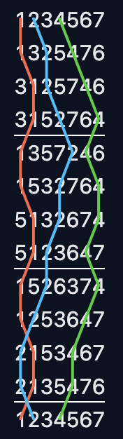 - reverse tenors at backstroke (on even stages), e.g.