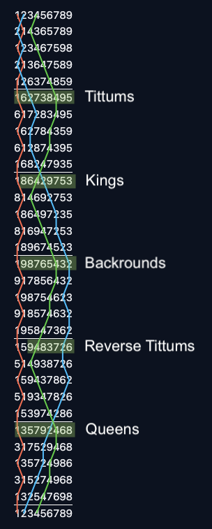 The permutation that takes us from rounds to Queens happens to take us to Tittums if we do it in reverse.